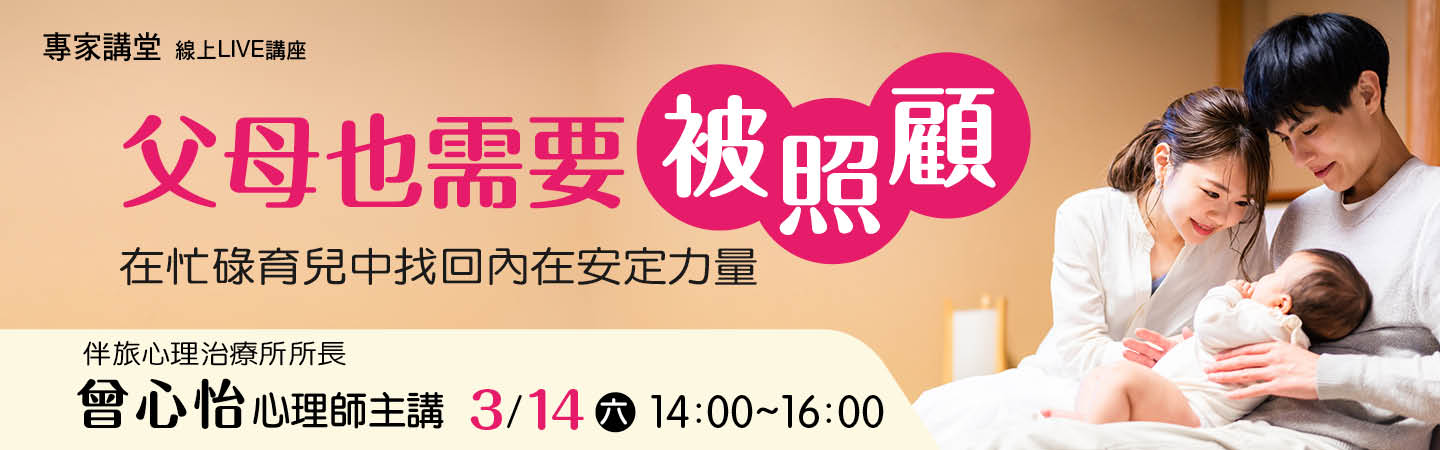一、親職講座名稱:【父母也需要被照顧:在忙碌育兒中找回內在安定力量】